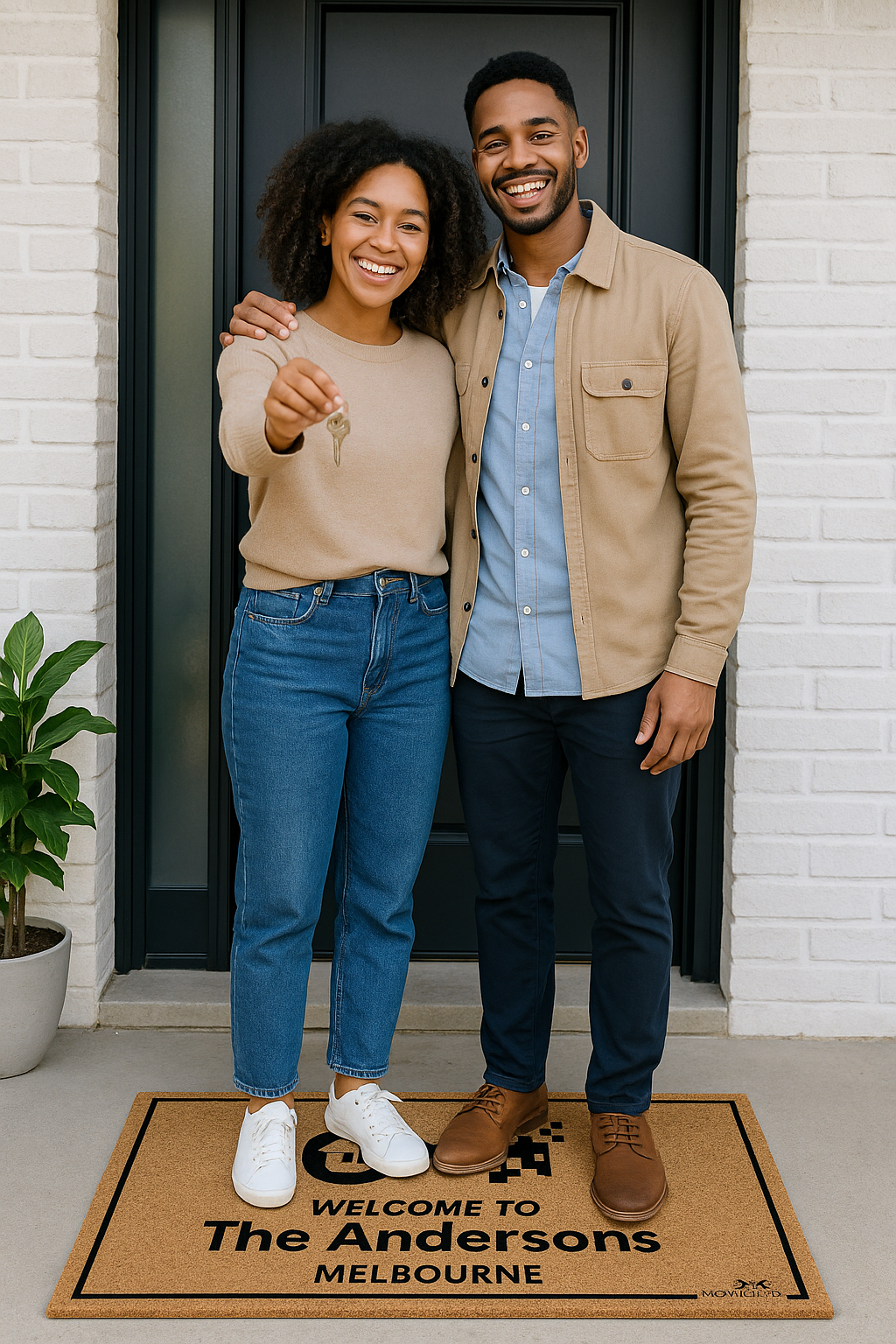 Step into the future with Unlock’d — a bold, modern mat featuring our exclusive Digital Pixel Key silhouette. Symbolising new beginnings and unlocking your forever home, it’s the perfect gift for new homeowners, couples, or real estate settlement.
